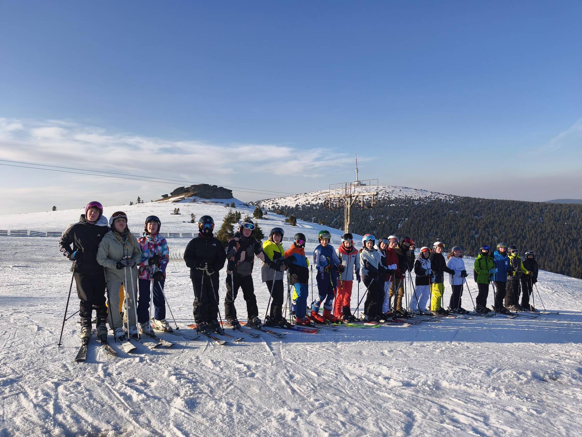 Sedmáci užívají posledního sněhu a sluníčka na horské chatě Barborce pod Pradědem. Všem se daří jak na sjezdovce,tak na běžkách.