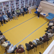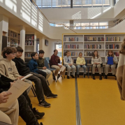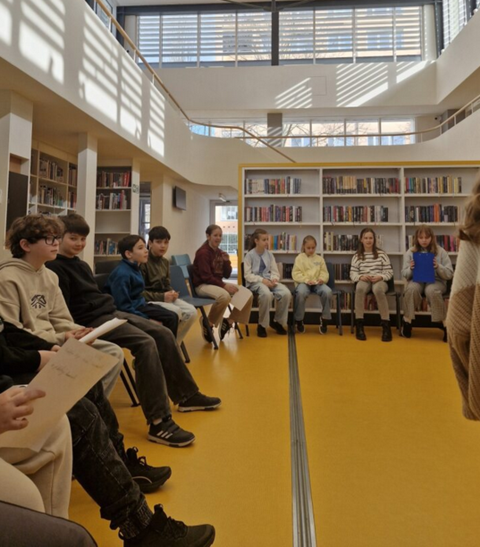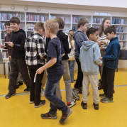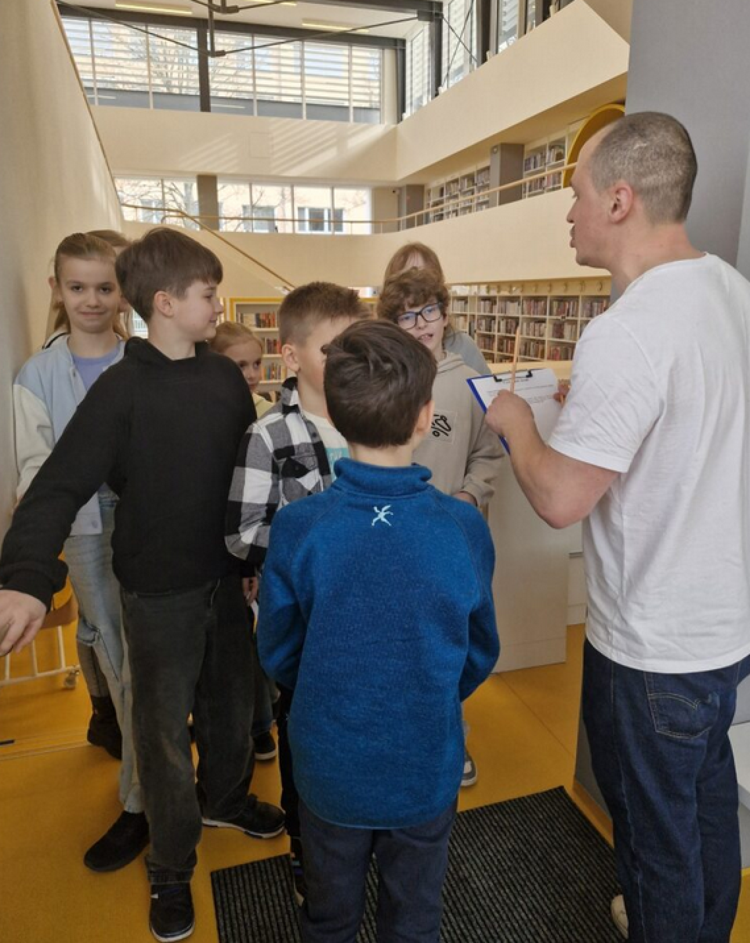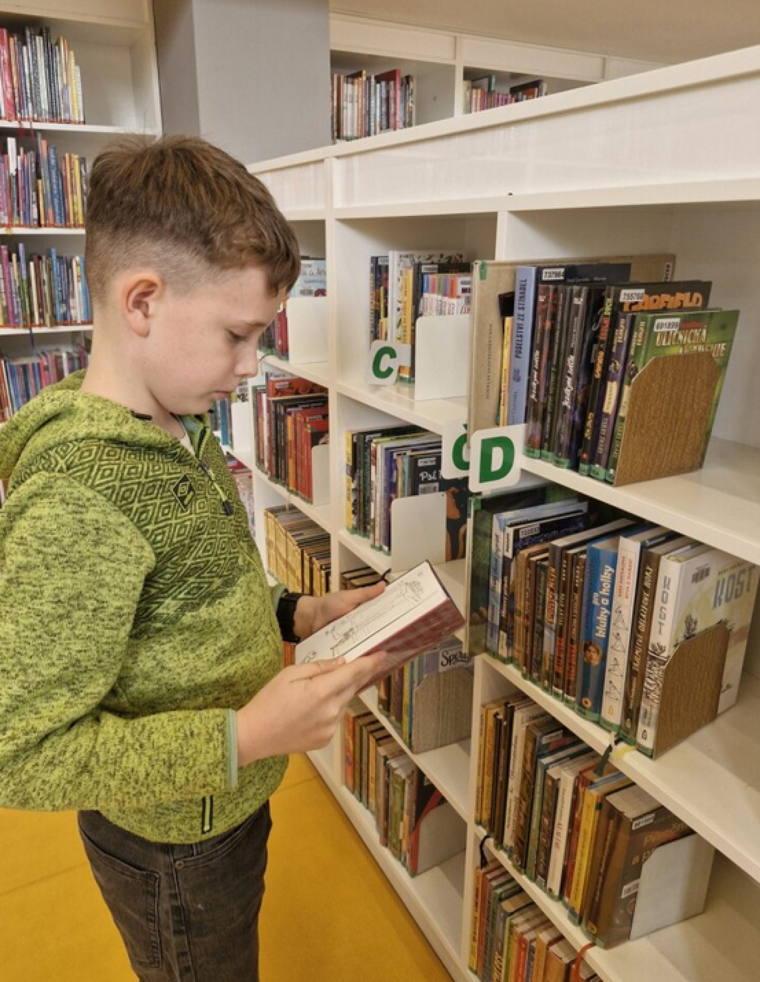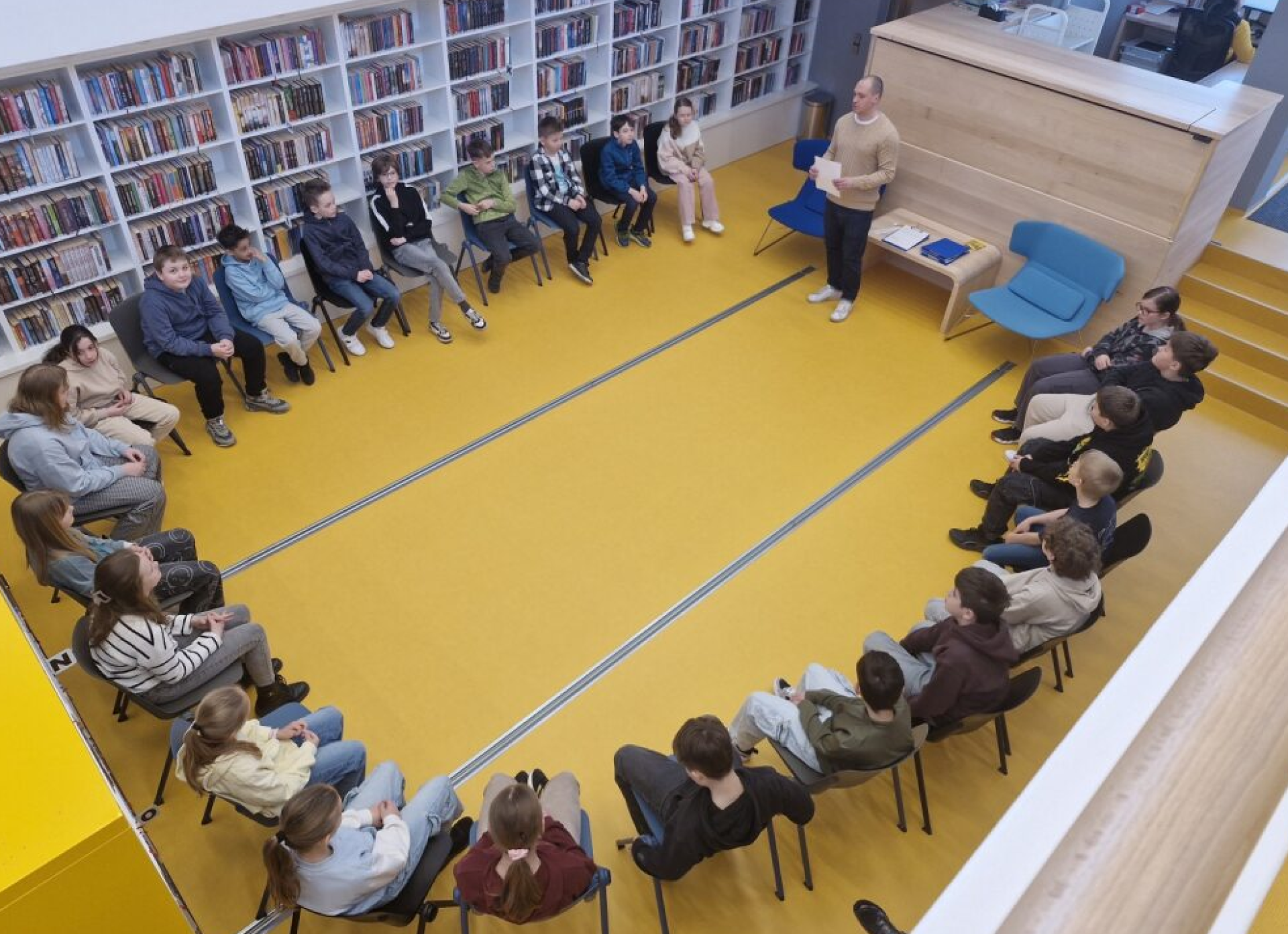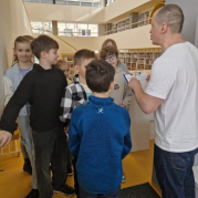 láká čtenáře z řad dětí i dospělých. Na besedu do nových prostor se v pondělí vydali čtvrťáci.