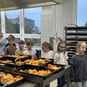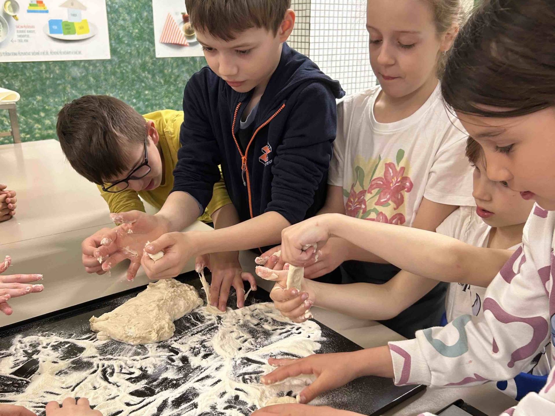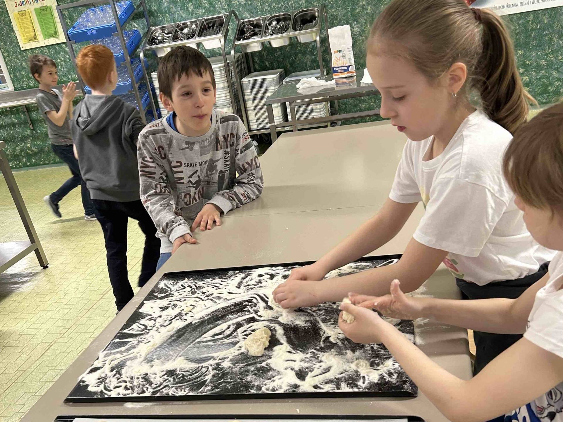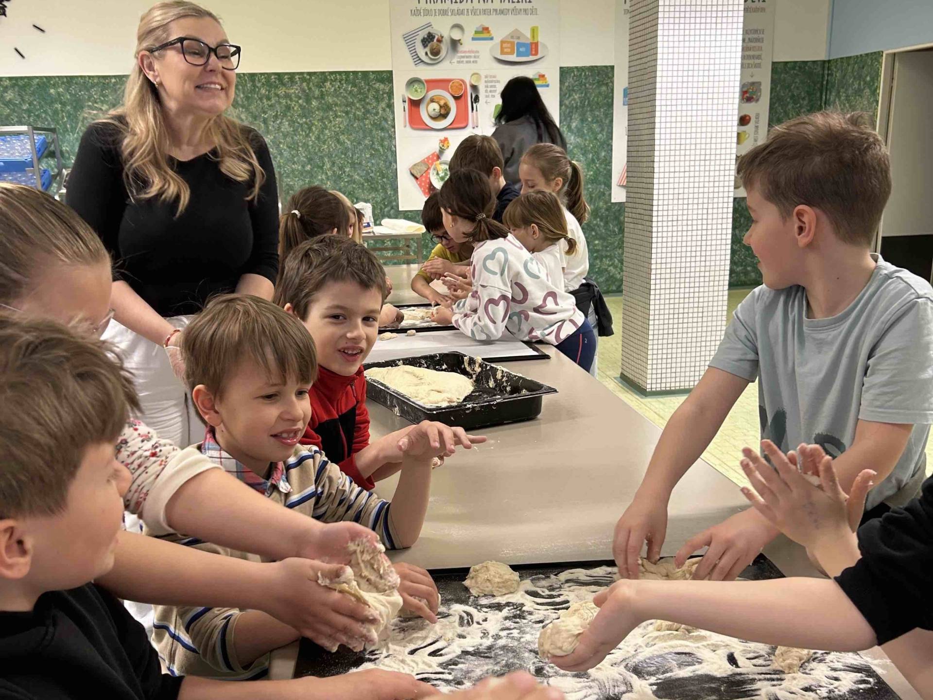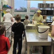 Tentokrát si druháčci prohlédli provoz školní kuchyně, zjistili, jak je to náročná práce, a nakonec si sami vyrobili buchty.