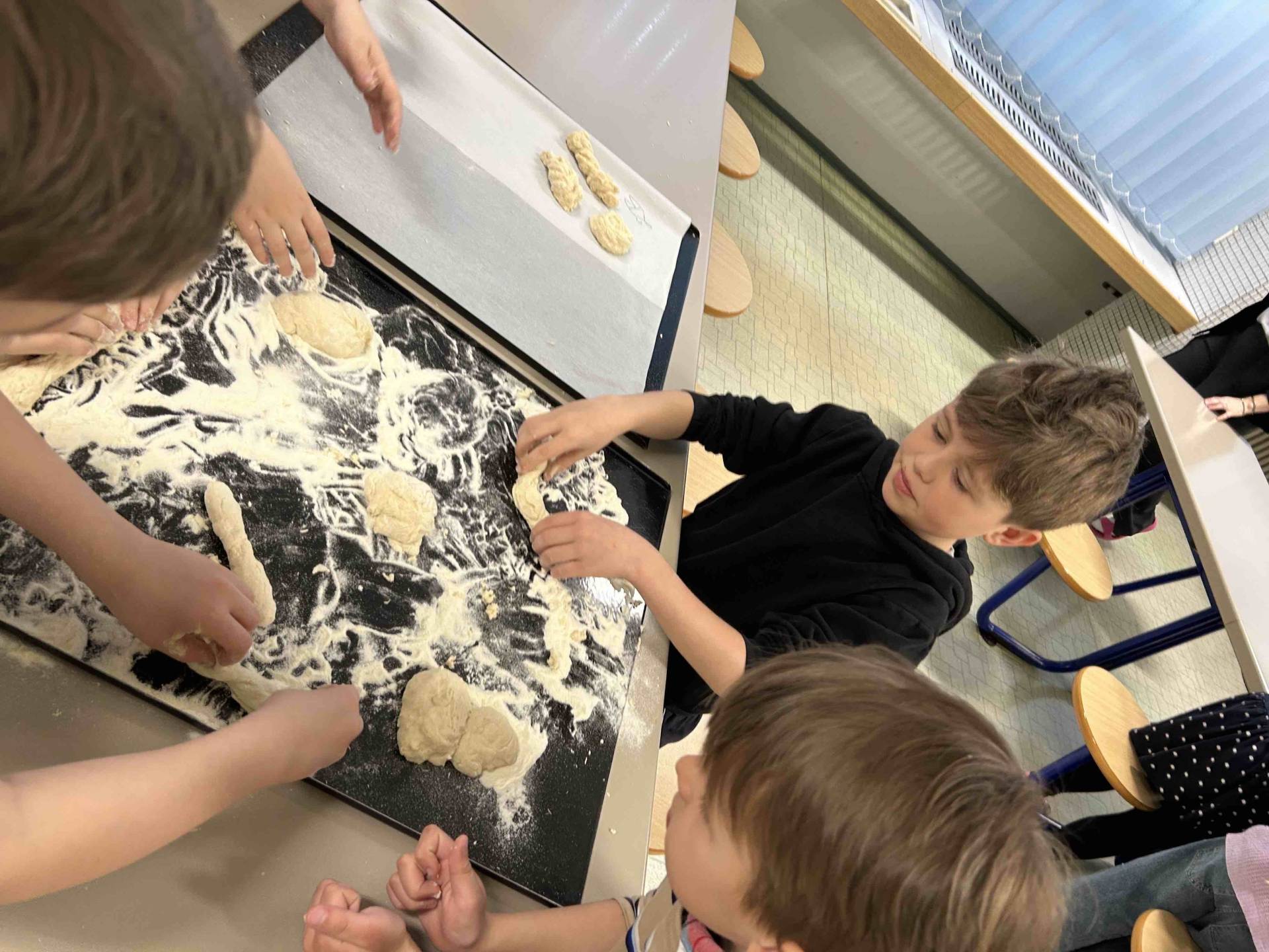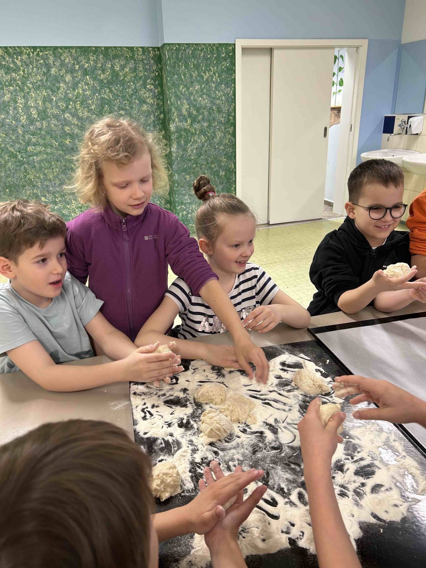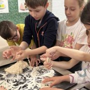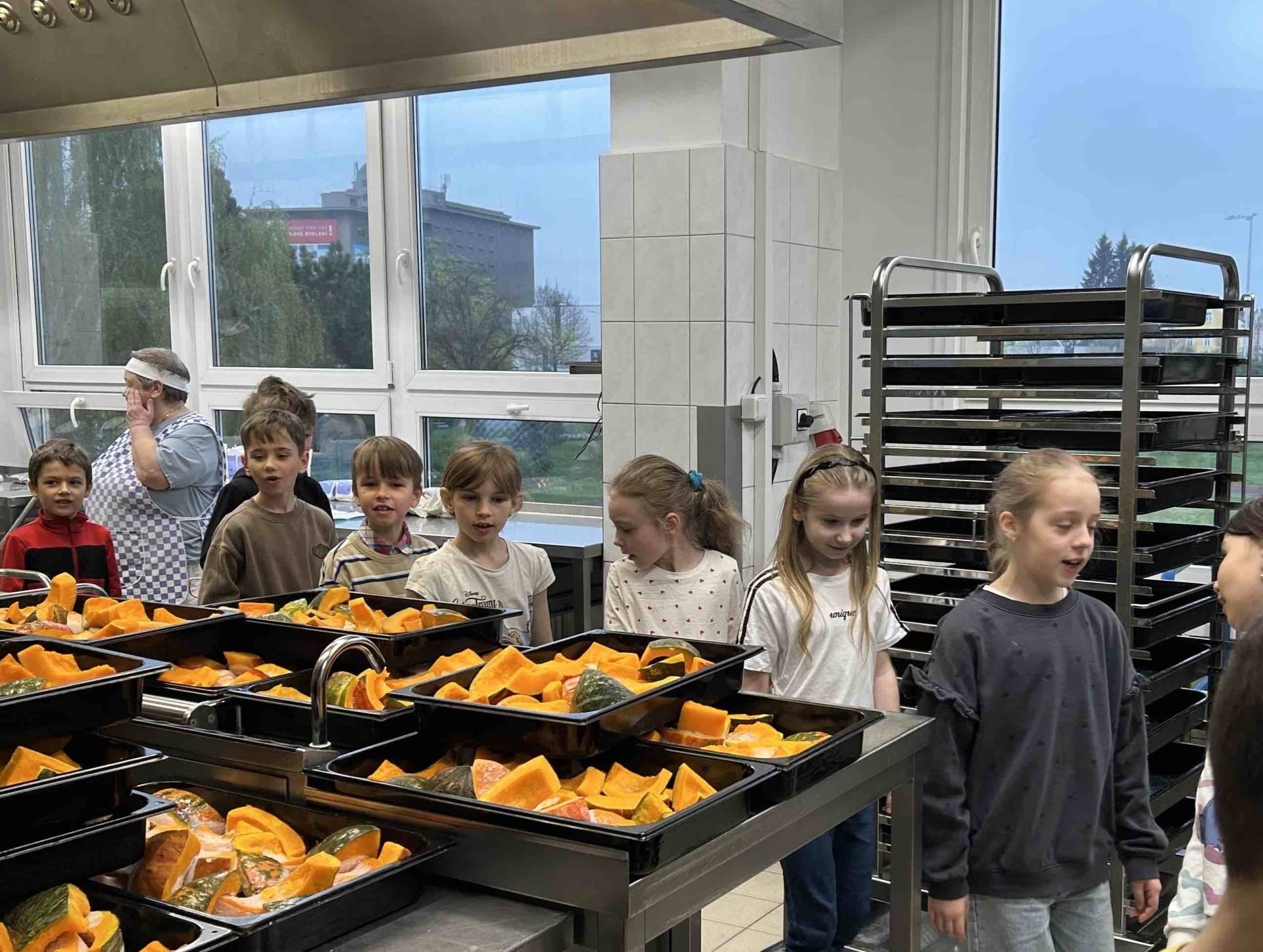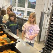 Tentokrát si druháčci prohlédli provoz školní kuchyně, zjistili, jak je to náročná práce, a nakonec si sami vyrobili buchty.